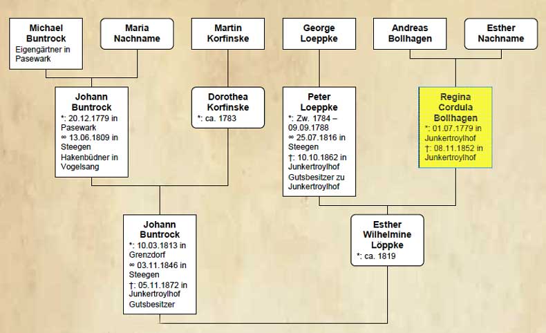 Identifizierte eigene Altvordere und entferntere Familienmitglieder: Buntrock | Busian - Sellke | Claassen - Mierau | Dodenhöft | Dodenhöft | Dodenhöft | Dodenhöft - Wunderlich | Duwensee - Lietz | Foth | Foth - Rogge | Foth | Glodd | Glod | Glodde - Goergens | Glodde | Gnocky | Harder - Tuchel | Jäger - Schwichtenberg | Hins - Jahn | Loeppke | Loeppke - Bollhagen | Lucht | Möller - Glodd | Schmidt - Lucht | Stanke - Janzen | Tuchel | Willems - Görgens | Wichmann | Willems - Harder |